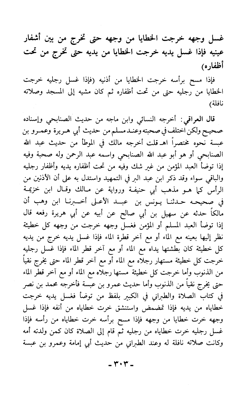 غسل وجهه خرجت الخطايا من وجهه حتى تخرج من بين أشفار عينيه فإذا غسل يديه خرجت الخطايا من يديه حتى تخرج من تحت أظفاره)