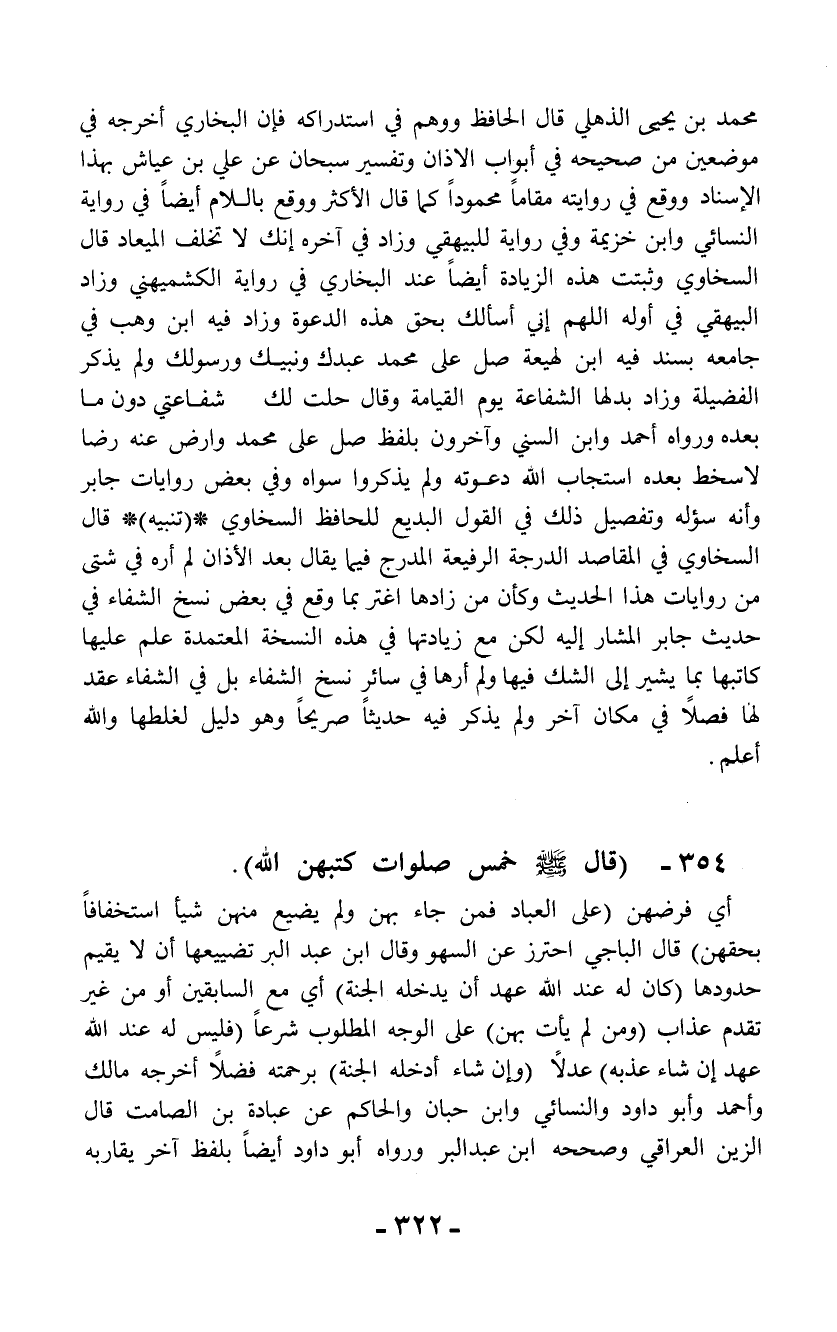 354 - (قال - صلى الله عليه وسلم - خمس صلوات كتبهن الله).