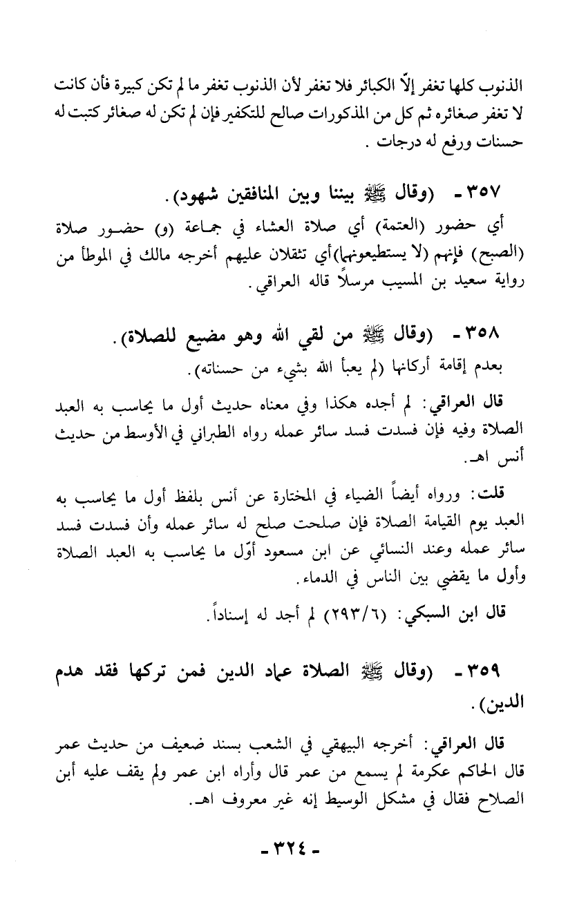 358 - (وقال - صلى الله عليه وسلم - من لقي الله وهو مضيع للصلاة).
