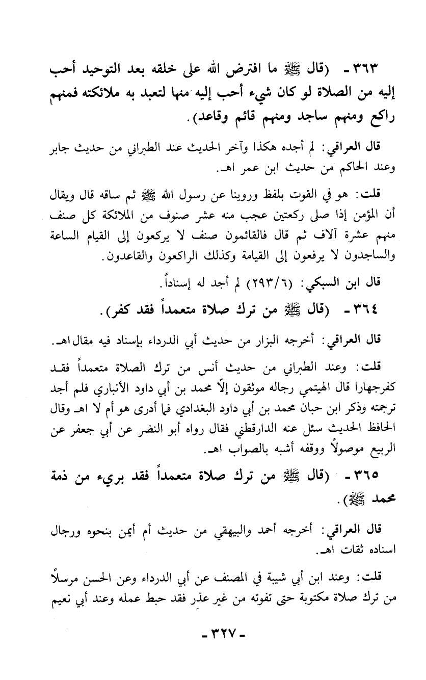 364 - (قال - صلى الله عليه وسلم - من ترك صلاة متعمداً فقد كفر).