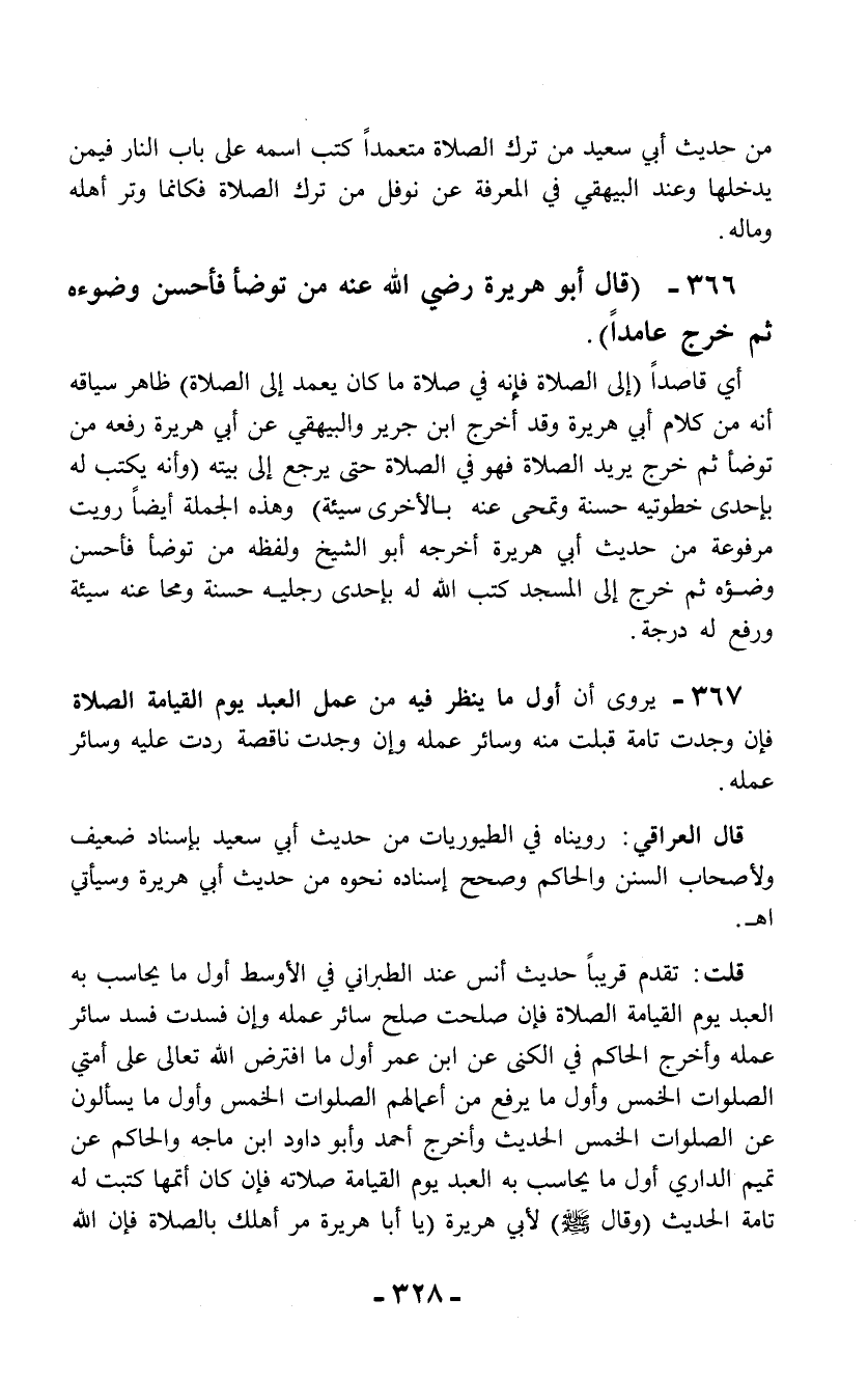 366 - (قال أبو هريرة رضي الله عنه من توضأ فأحسن وضوءه ثم خرج عامداً).