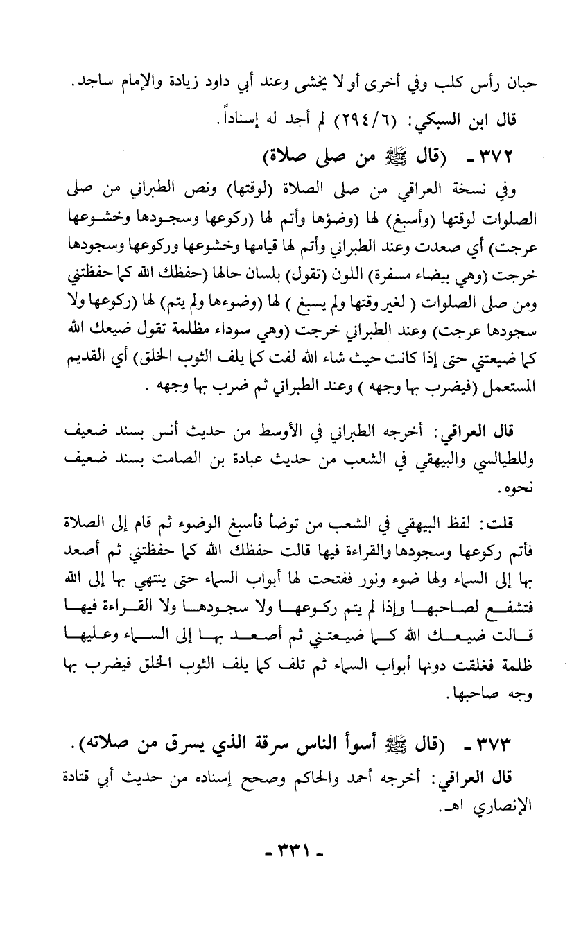 373 - (قال - صلى الله عليه وسلم - أسوأ الناس سرقة الذي يسرق من صلاته).