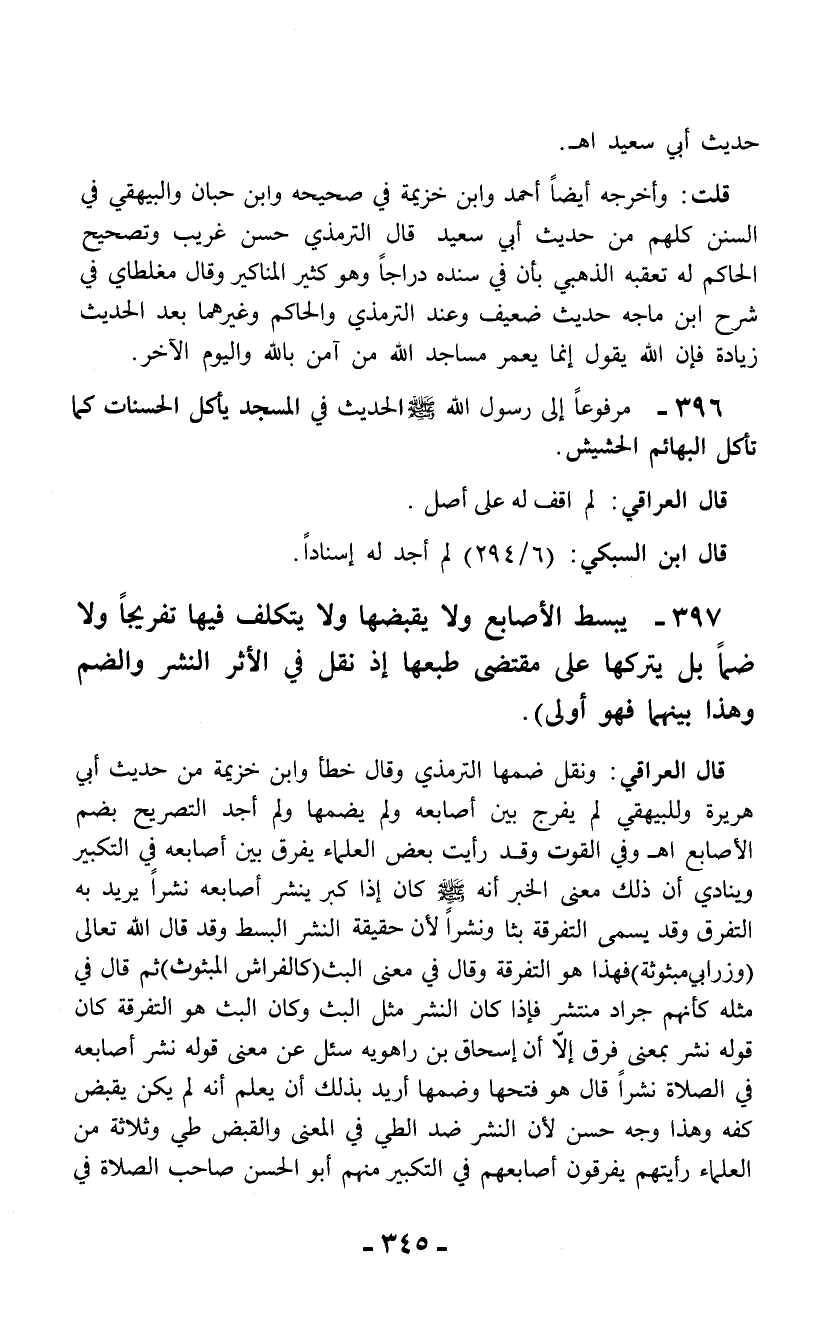 396 - مرفوعاً إلى رسول الله - صلى الله عليه وسلم - الحديث في المسجد يأكل الحسنات كما تأكل البهائم الحشيش.