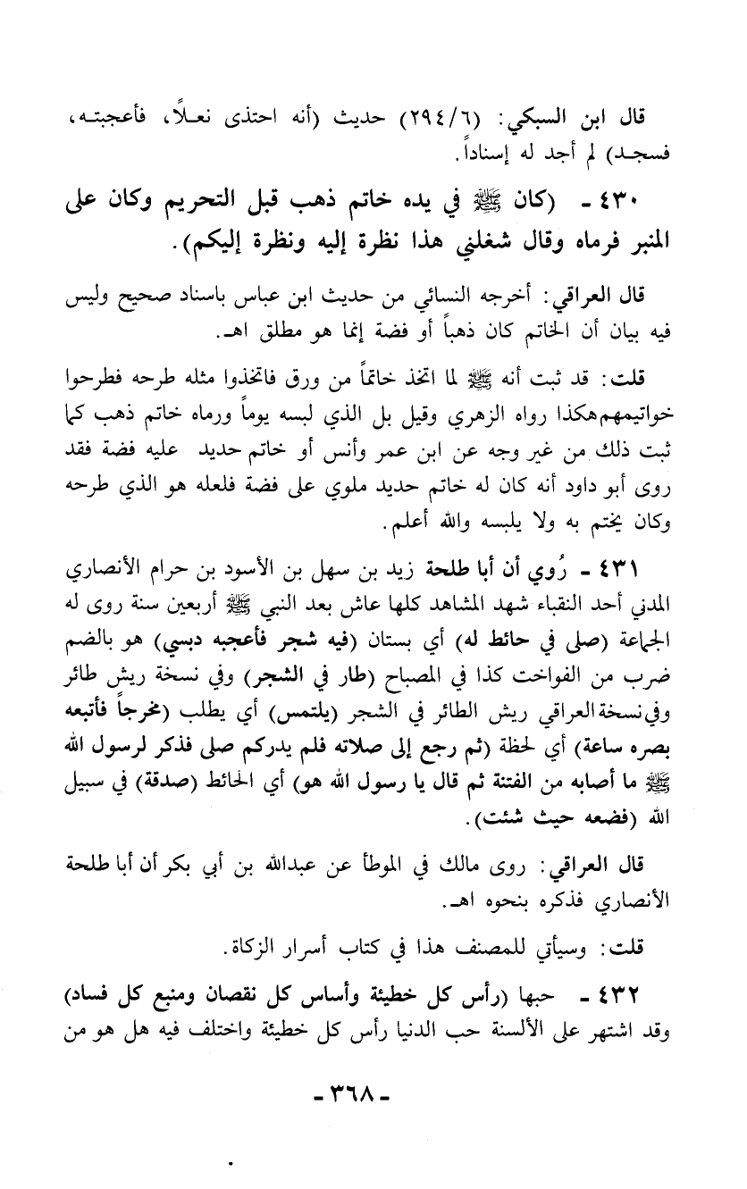 432 - حبها (رأس كل خطيئة وأساس كل نقصان ومنبع كل فساد) وقد اشتهر على الألسنة حب الدنيا رأس كل خطيئة واختلف فيه هل هو من