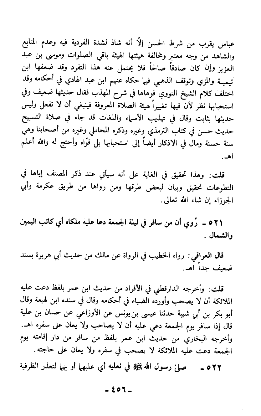 521 - رُوي أن من سافر في ليلة الجمعة دعا عليه ملكاه أي كاتب اليمين والشمال.