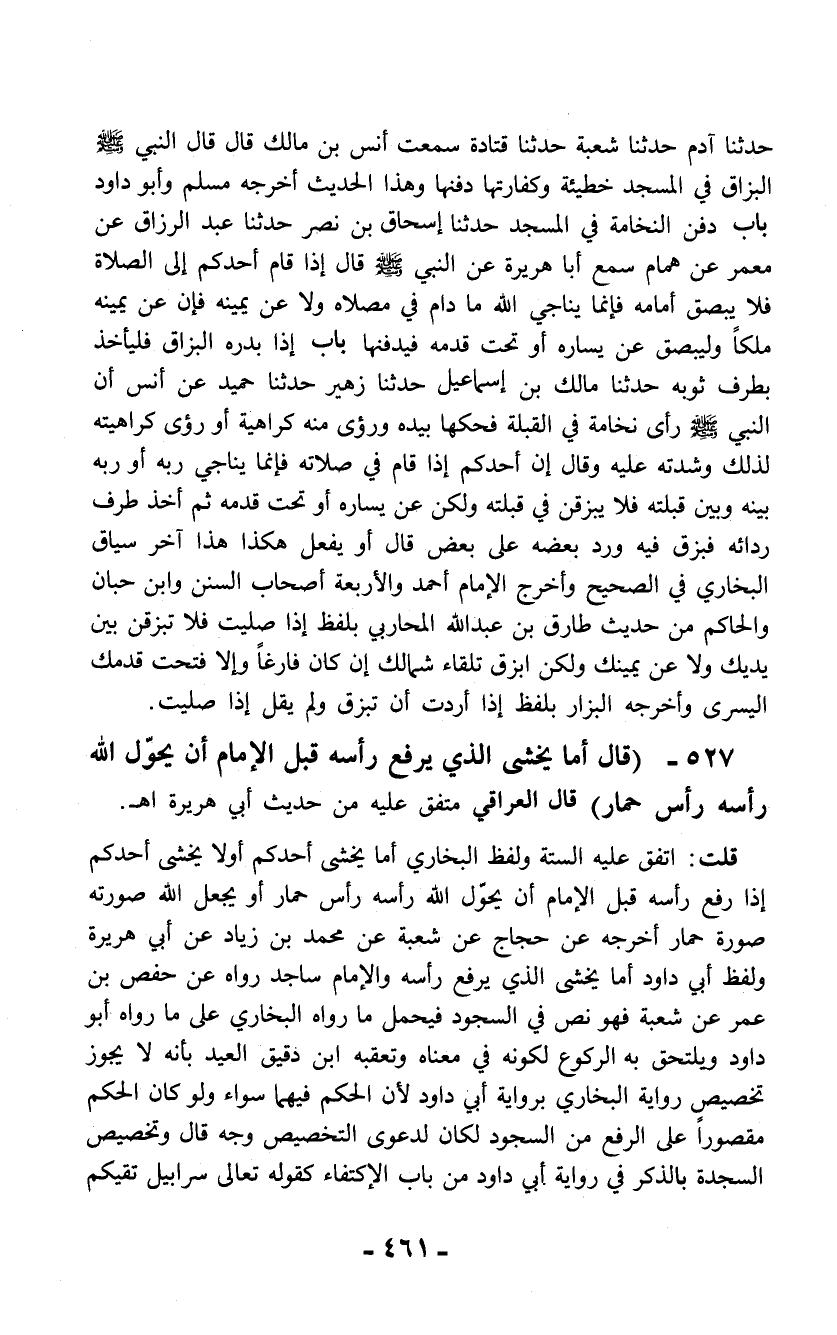 527 - (قال أما يخشى الذي يرفع رأسه قبل الإمام أن يحوّل الله رأسه رأس حمار) قال العراقي متفق عليه من حديث أبي هريرة اهـ.
