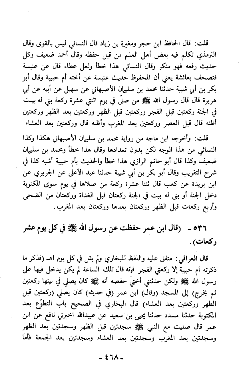 536 - (قال ابن عمر حفظت عن رسول الله - صلى الله عليه وسلم - في كل يوم عشر ركعات).