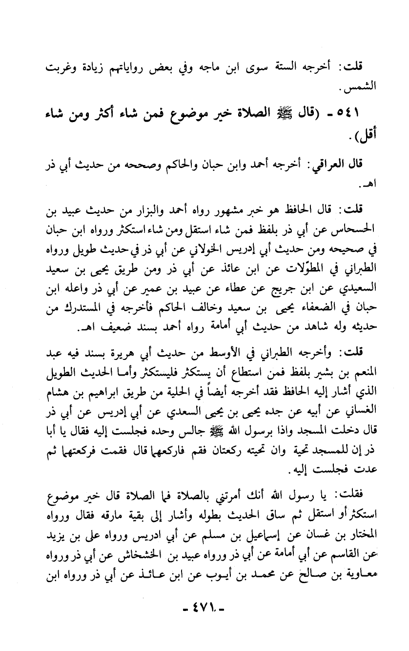 541 - (قال - صلى الله عليه وسلم - الصلاة خير موضوع فمن شاء أكثر ومن شاء أقل).