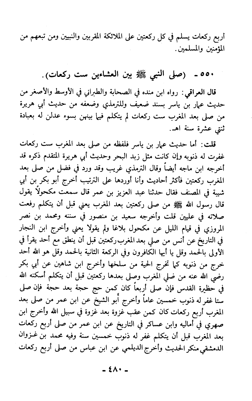 550 - (صلى النبي - صلى الله عليه وسلم - بين العشاءين ست ركعات).