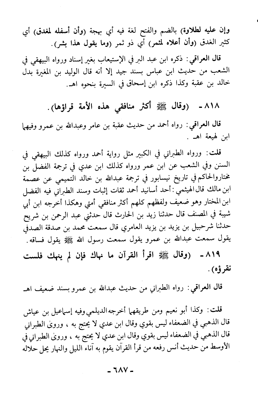 818 - (وقال - صلّى الله عليه وسلم - أكثر منافقي هذه الأمة قراؤها).
