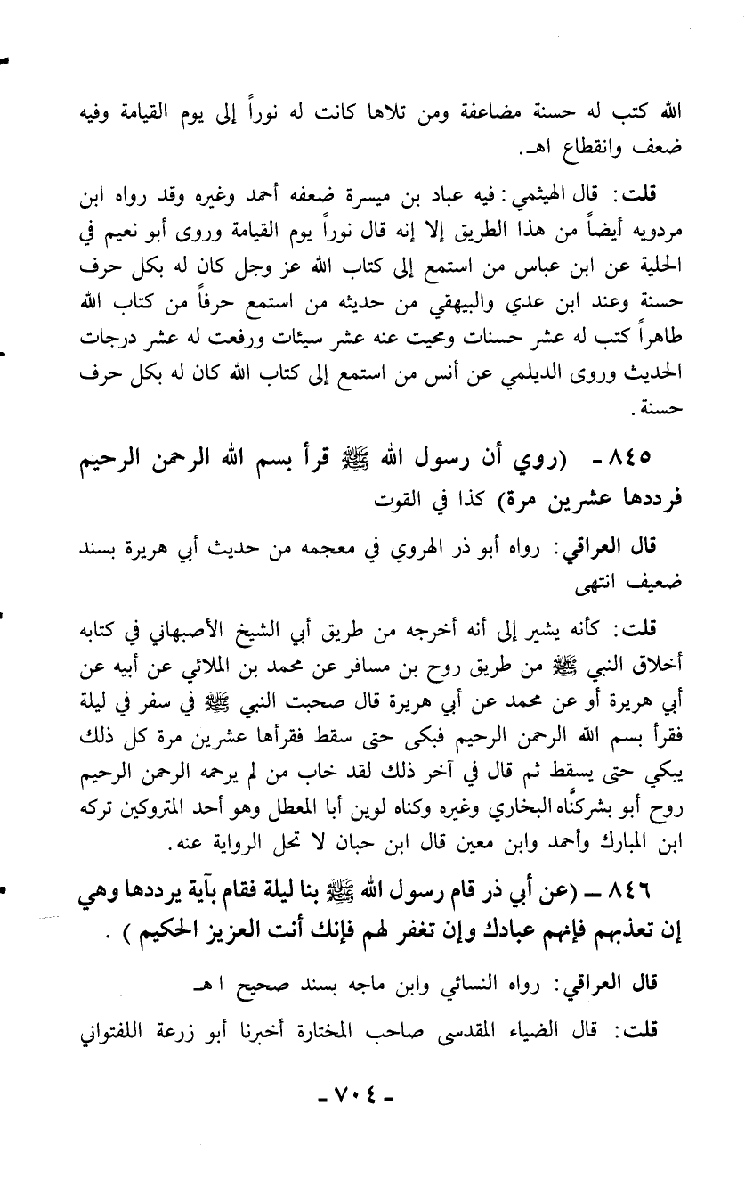 845 - (روي أن رسول الله - صلّى الله عليه وسلم - قرأ بسم الله الرحمن الرحيم فرددها عشرين مرة) كذا في القوت