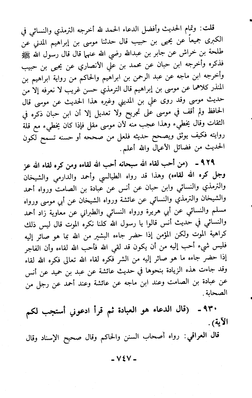 930 - (قال الدعاء هو العبادة ثم قرأ ادعوني أستجب لكم الآية).
