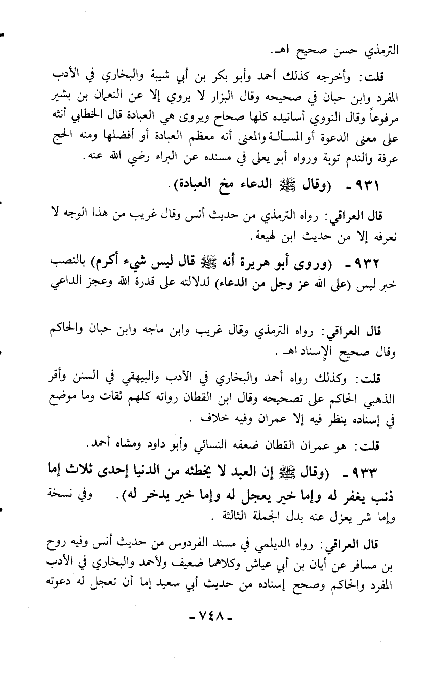 931 - (وقال - صلّى الله عليه وسلم - الدعاء مخ العبادة).