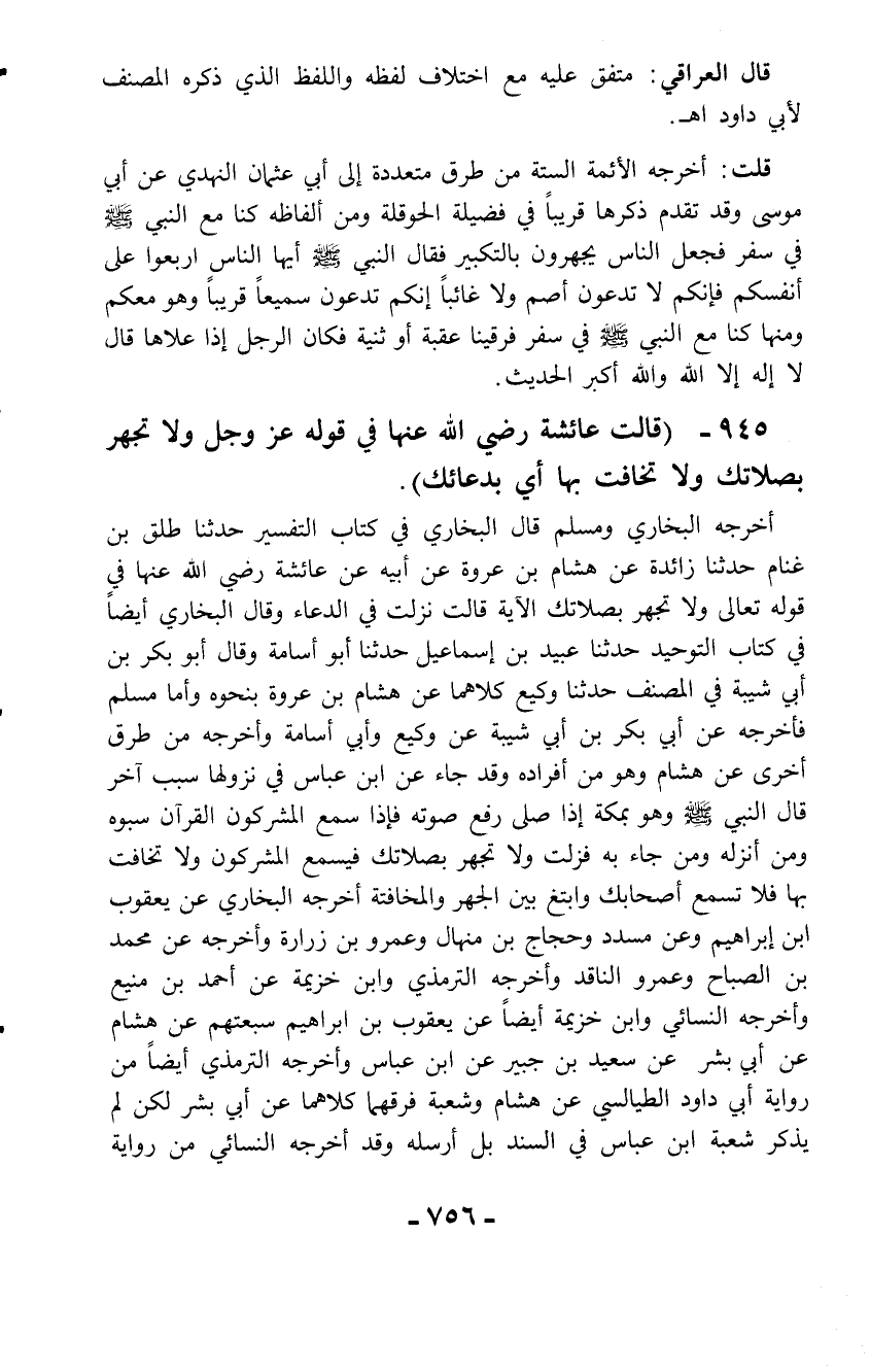 945 - (قالت عائشة رضي الله عنها في قوله عز وجل ولا تجهر بصلاتك ولا تخافت بها أي بدعائك).