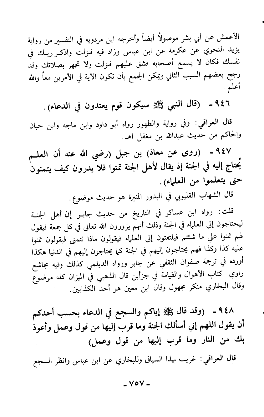946 - (قال النبي - صلّى الله عليه وسلم - سيكون قوم يعتدون في الدعاء).