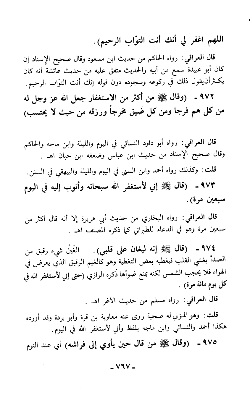 973 - (قال - صلّى الله عليه وسلم - إني لأستغفر الله سبحانه وأتوب إليه في اليوم سبعين مرة).
