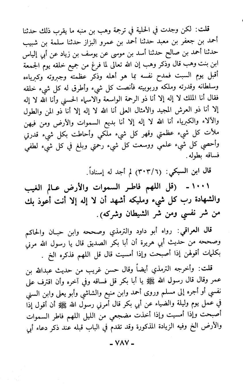 1001 - (قل اللهم فاطر السماوات والأرض عالم الغيب والشهادة رب كل شيء ومليكه أشهد أن لا إله إلا أنت أعوذ بك من شر نفسي ومن شر الشيطان وشركه).