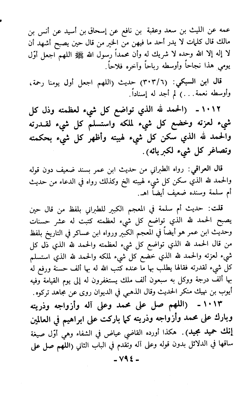 1012 - (الحمد لله الذي تواضع كل شيء لعظمته وذل كل شيء لعزته وخضع كل شيء لملكه واستسلم كل شيء لقدرته والحمد لله الذي سكن كل شيء لهيبته وأظهر كل شيء بحكمته وتصاغر كل شيء لكبريائه).