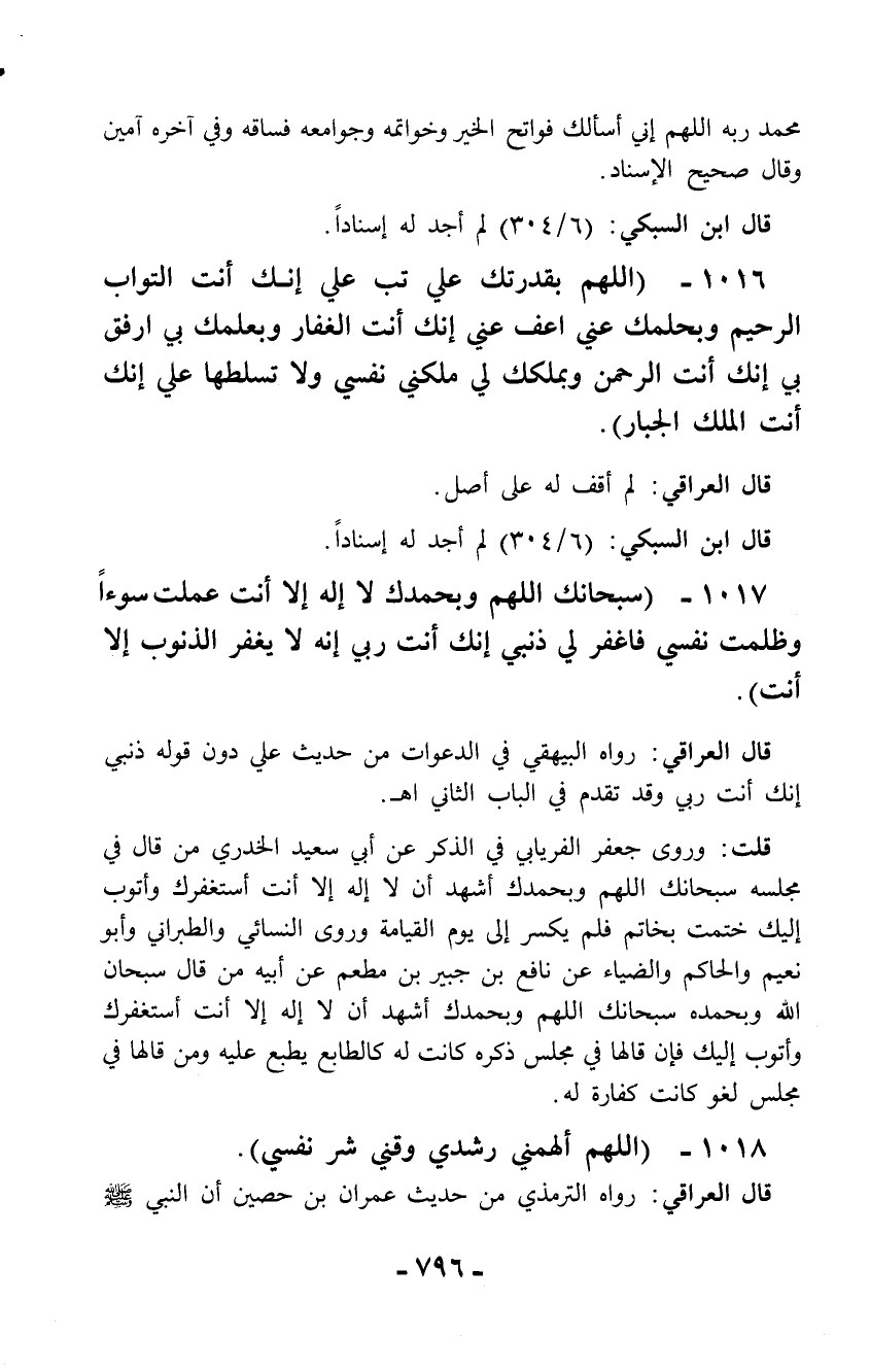1017 - (سبحانك اللهم وبحمدك لا إله إلا أنت عملت سوءاً وظلمت نفسي فاغفر لي ذنبي إنك أنت ربي إنه لا يغفر الذنوب إلا أنت).
