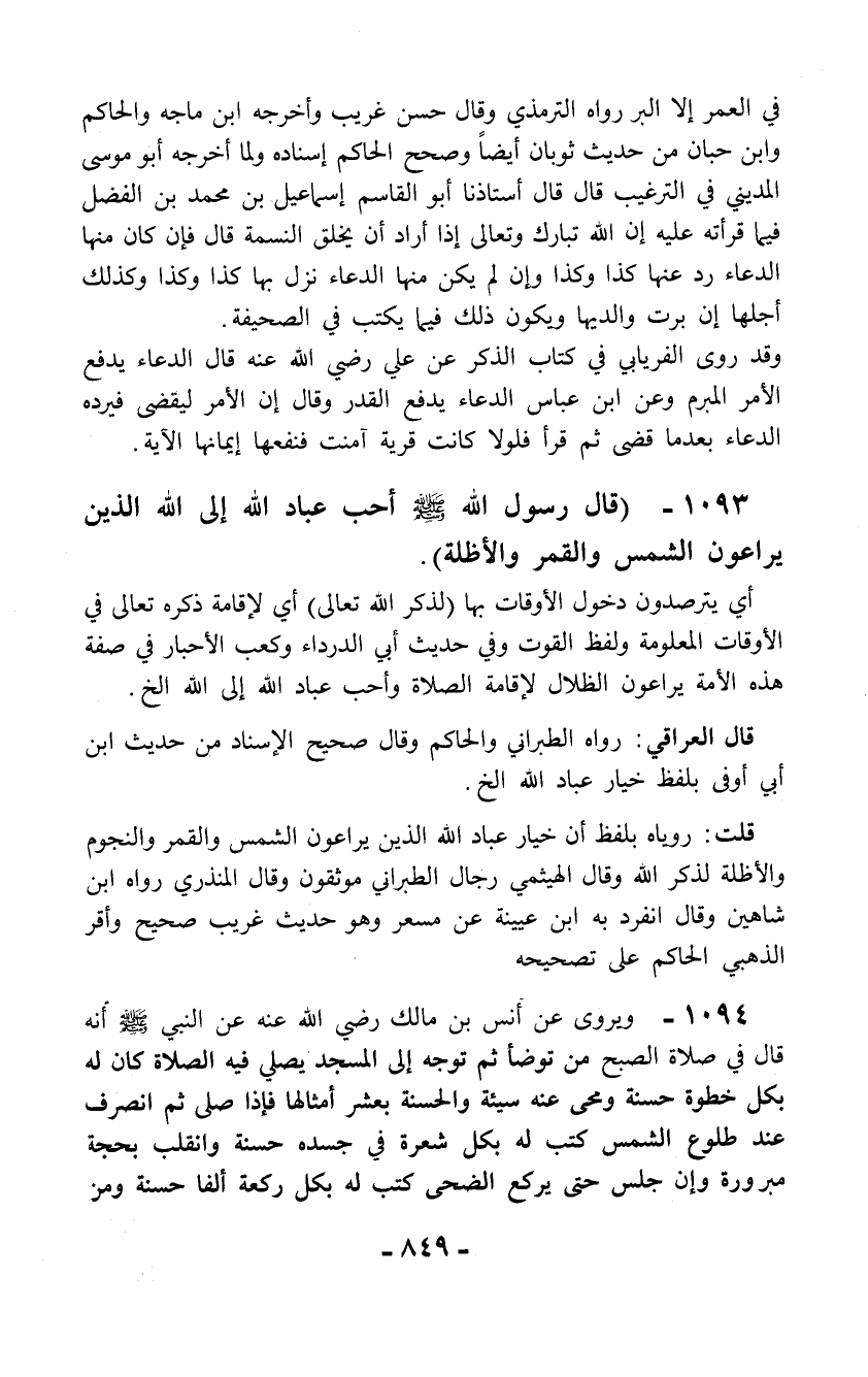 1093 - (قال رسول الله - صلّى الله عليه وسلم - أحب عباد الله إلى الله الذين يراعون الشمس والقمر والأظلة).