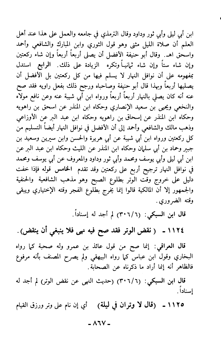1124 - (نقض الوتر فقد صح فيه نهى فلا ينبغي أن ينقض).