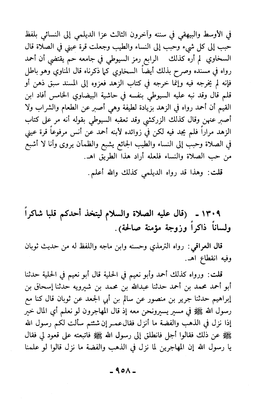 1309 - (قال عليه الصلاة والسلام ليتخذ أحدكم قلبا شاكراً ولساناً ذاكراً وزوجة مؤمنة صالحة).