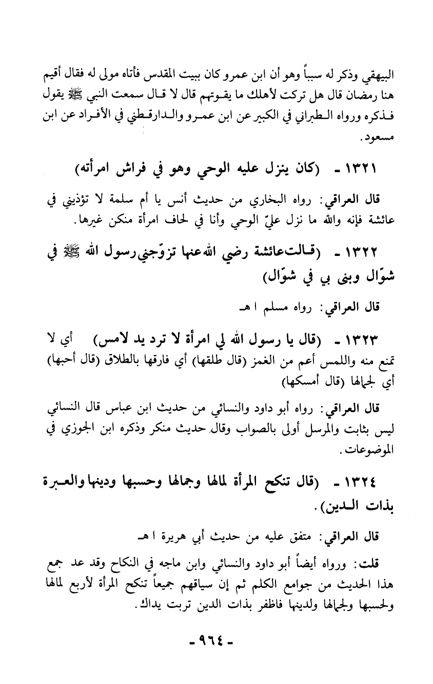 1321 - (كان ينزل عليه الوحي وهو في فراش امرأته)