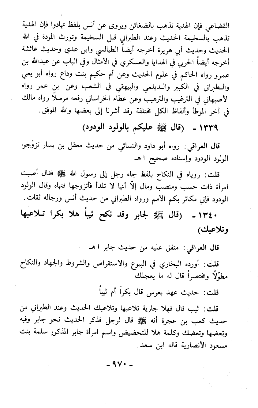 1340 - (قال - صلّى الله عليه وسلم - لجابر وقد نكح ثيباً هلا بكرا تلاعبها وتلاعبك)