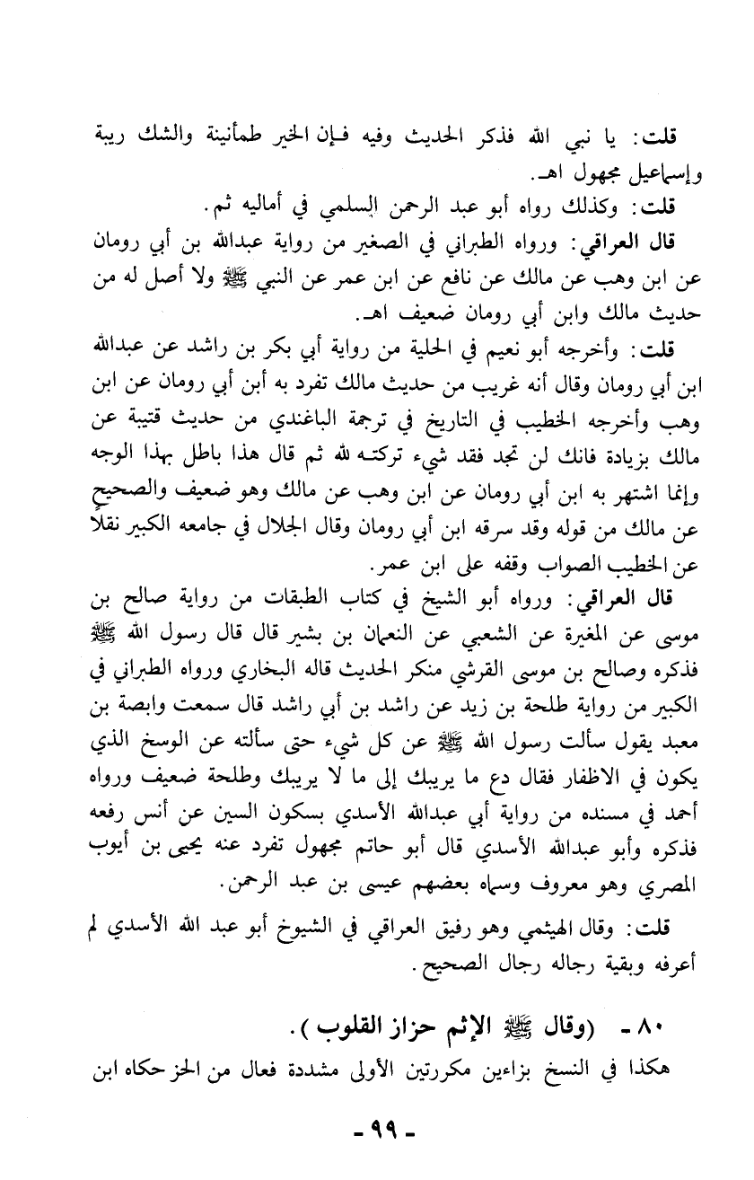 80 - (وقال - صلى الله عليه وسلم - الإثم حزاز القلوب).
