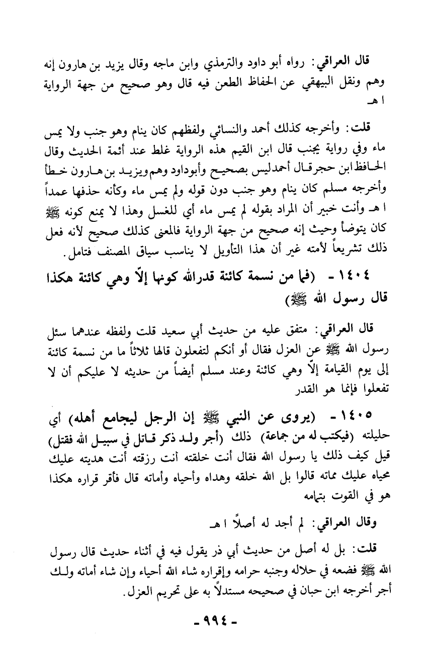 1404 - (فما من نسمة كائنة قدر الله كونها إلاَّ وهي كائنة هكذا قال رسول الله - صلّى الله عليه وسلم -)
