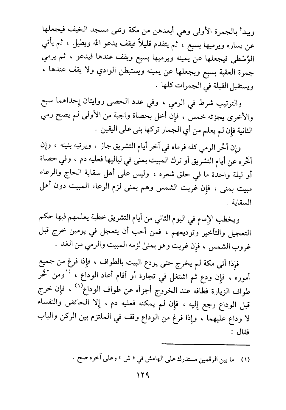 ويخطب الإِمام في اليوم الثاني من أيام التشريق خطبة يعلمهم فيها حكم التعجيل والتأخير وتوديعهم، فمن أحب أن يتعجل في يومين خرج قبل غروب الشمس، فإِن غربت وهو بمنى لزمه المبيت والرمي من الغد.