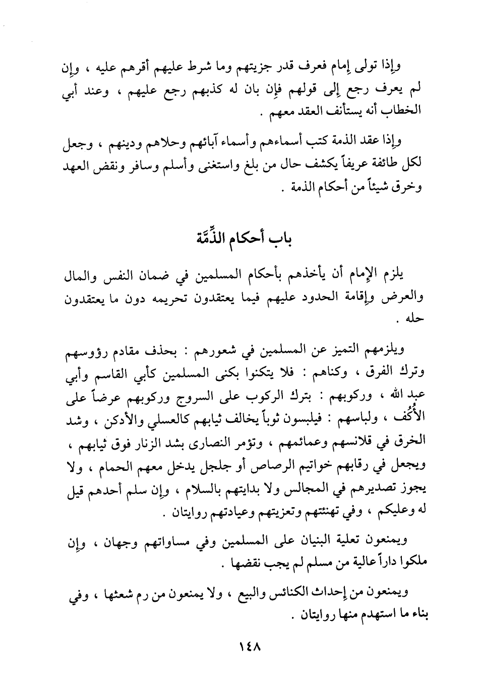 وإِذا عقد الذمة كتب أسماءهم وأسماء آبائهم وحلاهم ودينهم، وجعل لكل طائفة عريفاً يكشف حال من بلغ واستغنى وأسلم وسافر ونقض العهد وخرق شيئاً من أحكام الذمة.