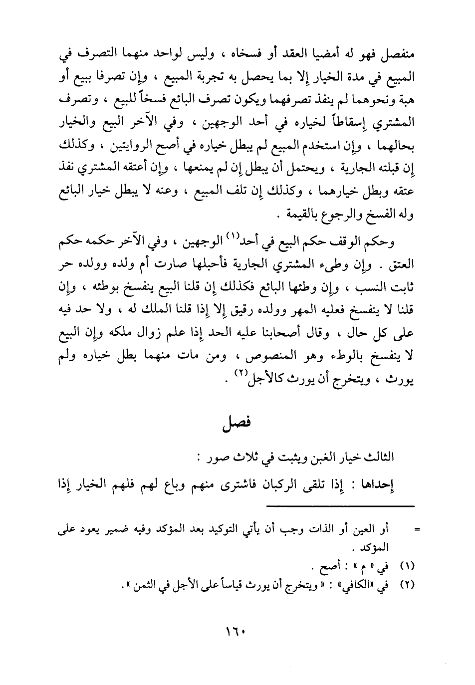 (¬2) في "الكافي": "ويتخرج أن يورث قياساً على الأجل في الثمن".