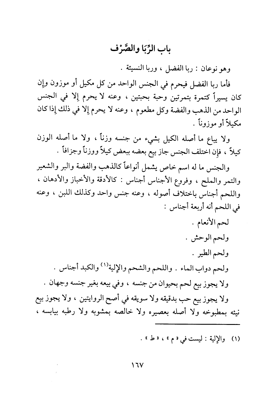 ولحم دواب الماء. واللحم والشحم والإِلية (¬1) والكبد أجناس.