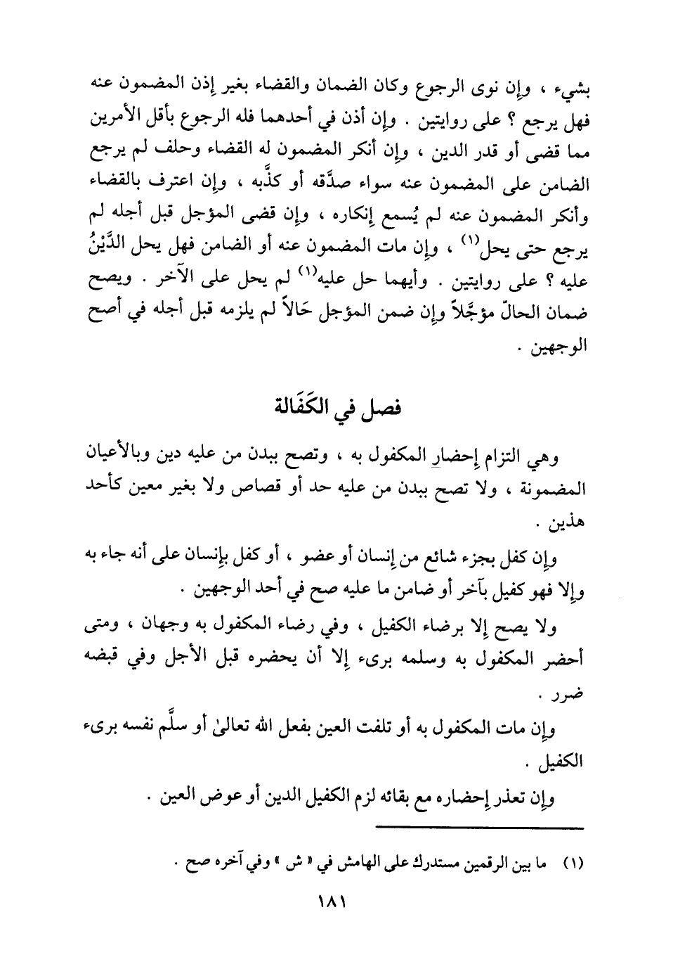 وِإن كفل بجزء شائع من إِنسان أو عضو، أو كفل بإِنسان على أنه جاء به وإِلا فهو كفيل بآخر أو ضامن ما عليه صح في أحد الوجهين.