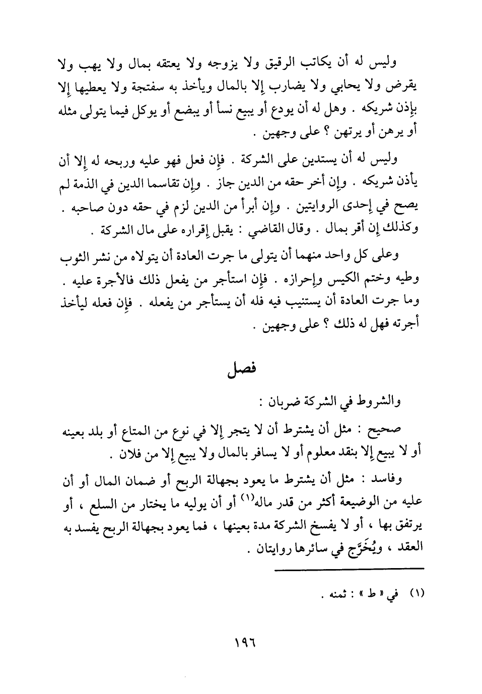 والشروط في الشركة ضربان: