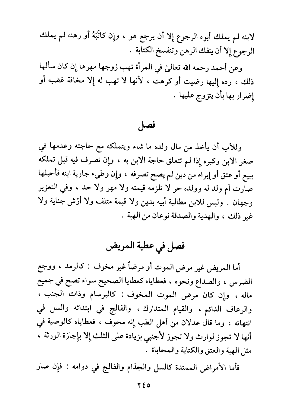 فصل في عطية المريض