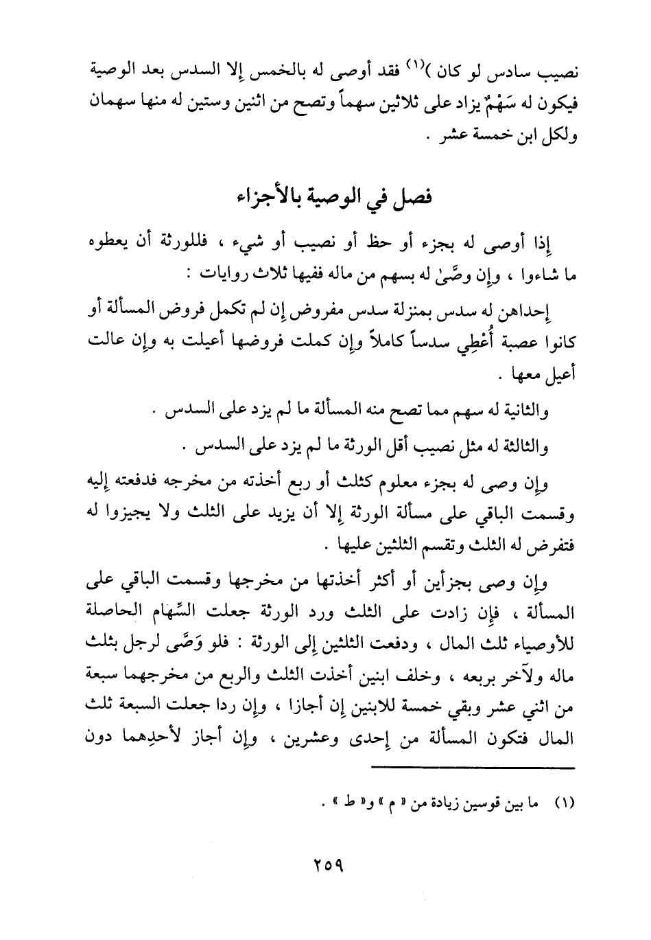 إِذا أوصى له بجزء أو حظ أو نصيب أو شيء، فللورثة أن يعطوه ما شاءوا، وإِن وصَّى له بسهم من ماله ففيها ثلاث روايات: