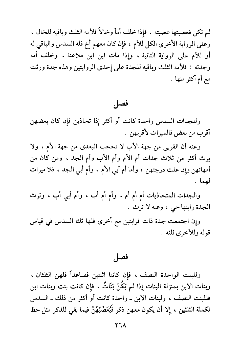 وللبنت الواحدة النصف، فإِن كانتا اثنتين فصاعداً فلهن الثلثان، وبنات الابن بمنزلة البنات إِذا لم يَكُنْ بَنَاتٌ، فإِن كانت بنت وبنات ابن فللبنت النصف، ولبنات الابن -واحدة كانت أو أكثر من ذلك- السدس تكملة الثلثين، إِلا أن يكون معهن ذكر فَيُعَصِّبُهُنَّ فيما بقي للذكر مثل حظ