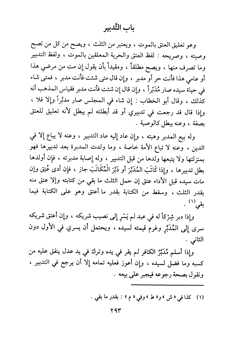 باب التَّدبير