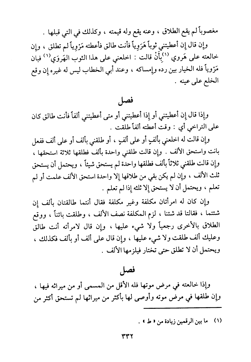 وإِن كان له امرأتان مكلفة وغير مكلفة فقال أنتما طالقتان بألف إِن شئتما، فقالتا قد شئنا، لزم المكلفة نصف الألف، وطلقت بائناً، ووقع الطلاق بالأخرى رجعياً ولا شيء عليها، وإِن قال لامرأته أنت طالق وعليك ألف طلقت ولا شيء عليها، وإِن قال على ألف أو بألف فكذلك، ويحتمل أن لا تطلق حتى تختار فيلزمها الألف.