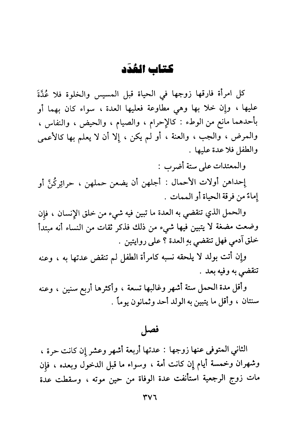 وأقل مدة الحمل ستة أشهر وغالبها تسعة، وأكثرها أربع سنين، وعنه سنتان، وأقل ما يتبين به الولد أحد وثمانون يوماً.