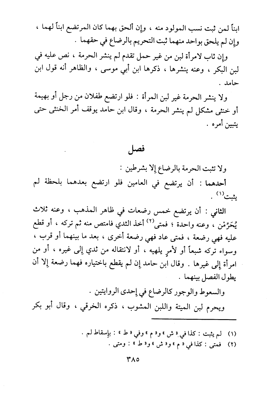 ولا تثبت الحرمة بالرضاع إِلا بشرطين:
