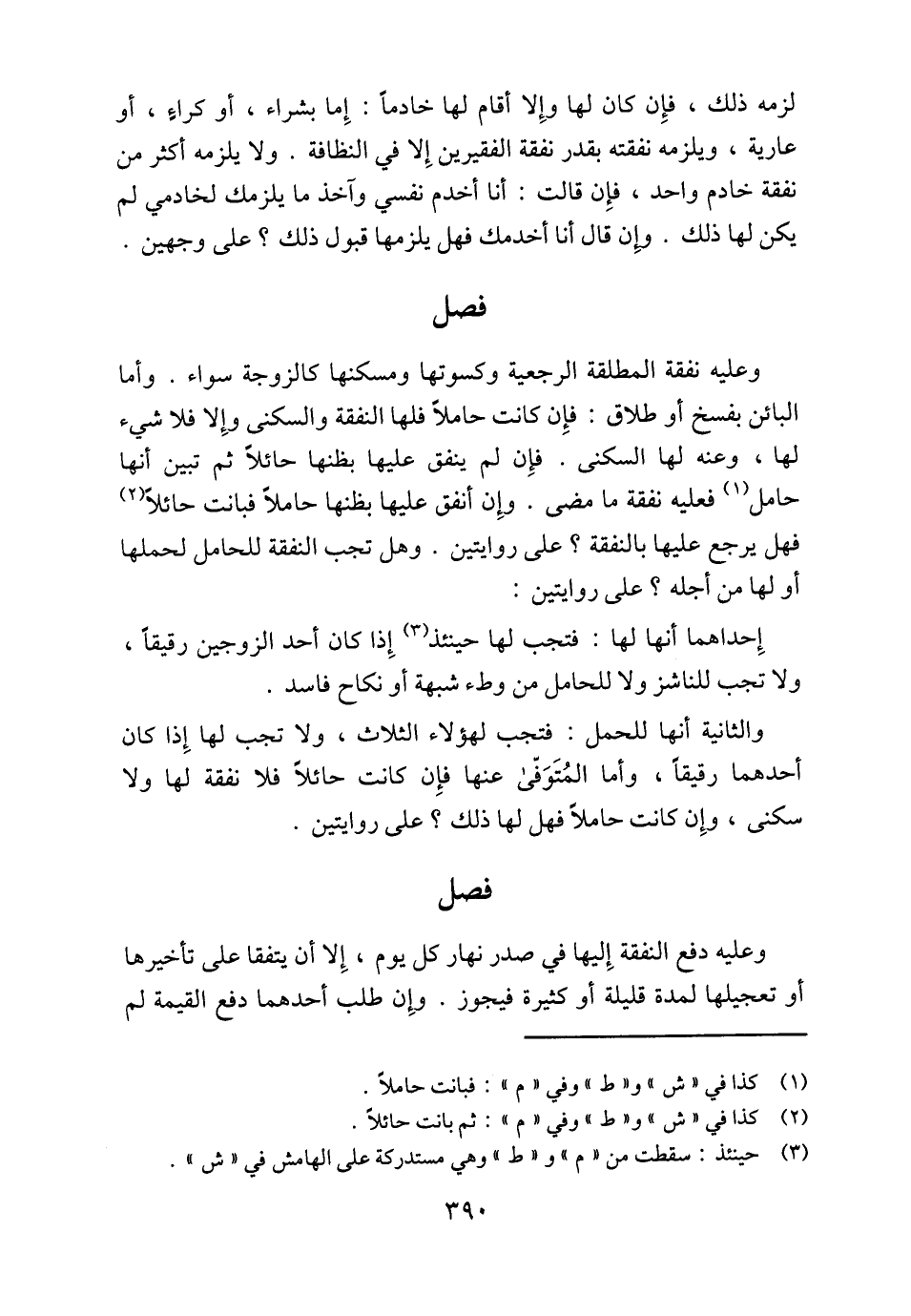 والثانية أنها للحمل: فتجب لهؤلاء الثلاث، ولا تجب لها إِذا كان أحدهما رقيقاً، وأما المُتَوَفّى عنها فإِن كانت حائلًا فلا نفقة لها ولا سكنى، وإِن كانت حاملًا فهل لها ذلك؟ على روايتين.