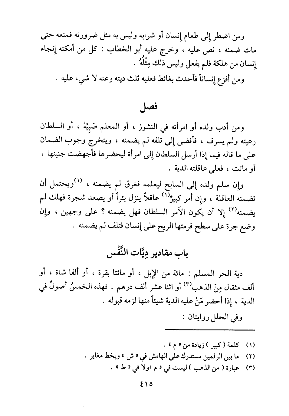 دية الحر المسلم: مائة من الإِبل، أو مائتا بقرة، أو ألفا شاة، أو ألف مثقال مِنَ الذهب (¬3) أو اثنا عشر ألف درهم. فهذه الخمسُ أصولٌ في الدية، إِذا أحضر مَنْ عليه الدية شيئاً منها لزمه قبوله.