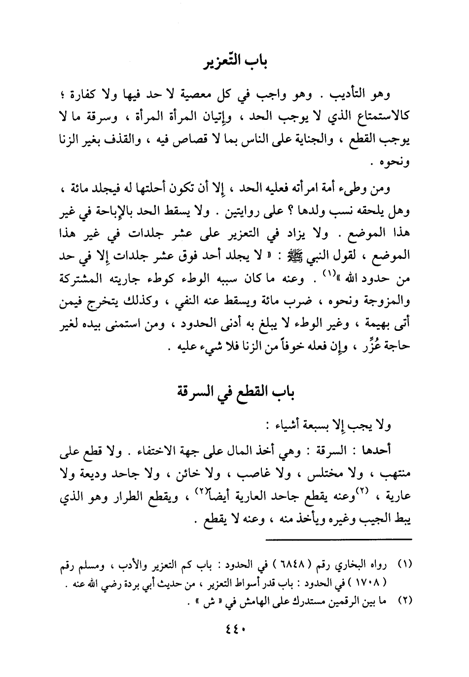 (¬1) رواه البخاري رقم (6848) في الحدود: باب كم التعزير والأدب، ومسلم رقم (1708) في الحدود: باب قدر أسواط التعزير، من حديث أبي بردة رضي الله عنه.