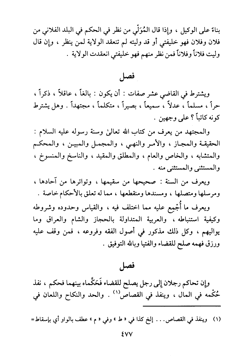ويعرف ما أُجْمِع عليه مما اختلف فيه، والقياس وحدوده وشروطه وكيفية استنباطه، والعربية المتداولة بالحجاز والشام والعراق وما يواليهم، وكل ذلك مذكور في أصول الفقه وفروعه، فمن وقف عليه ورزق فهمه صلح للقضاء والفتيا وبالله التوفيق.