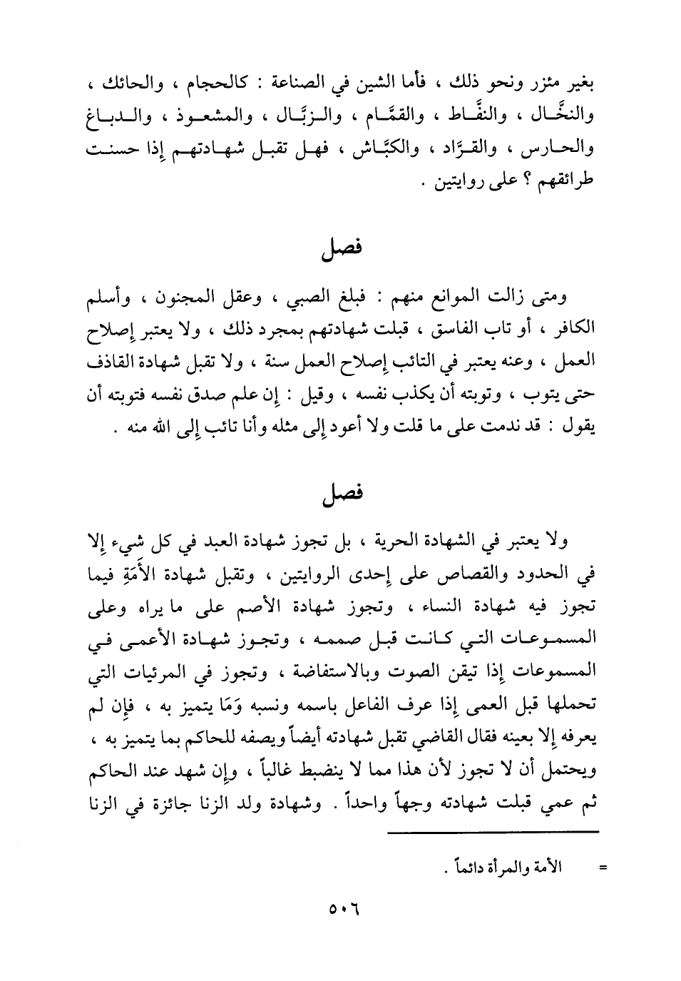 بغير مئزر ونحو ذلك، فأما الشين في الصناعة: كالحجام، والحائك، والنخَّال، والنفاط، والقمَّام، والزبَّال، والمشعوذ، والدباغ والحارس، والقرَّاد، والكبَّاش، فهل تقبل شهادتهم إِذا حسنت طرائقهم؟ على روايتين.