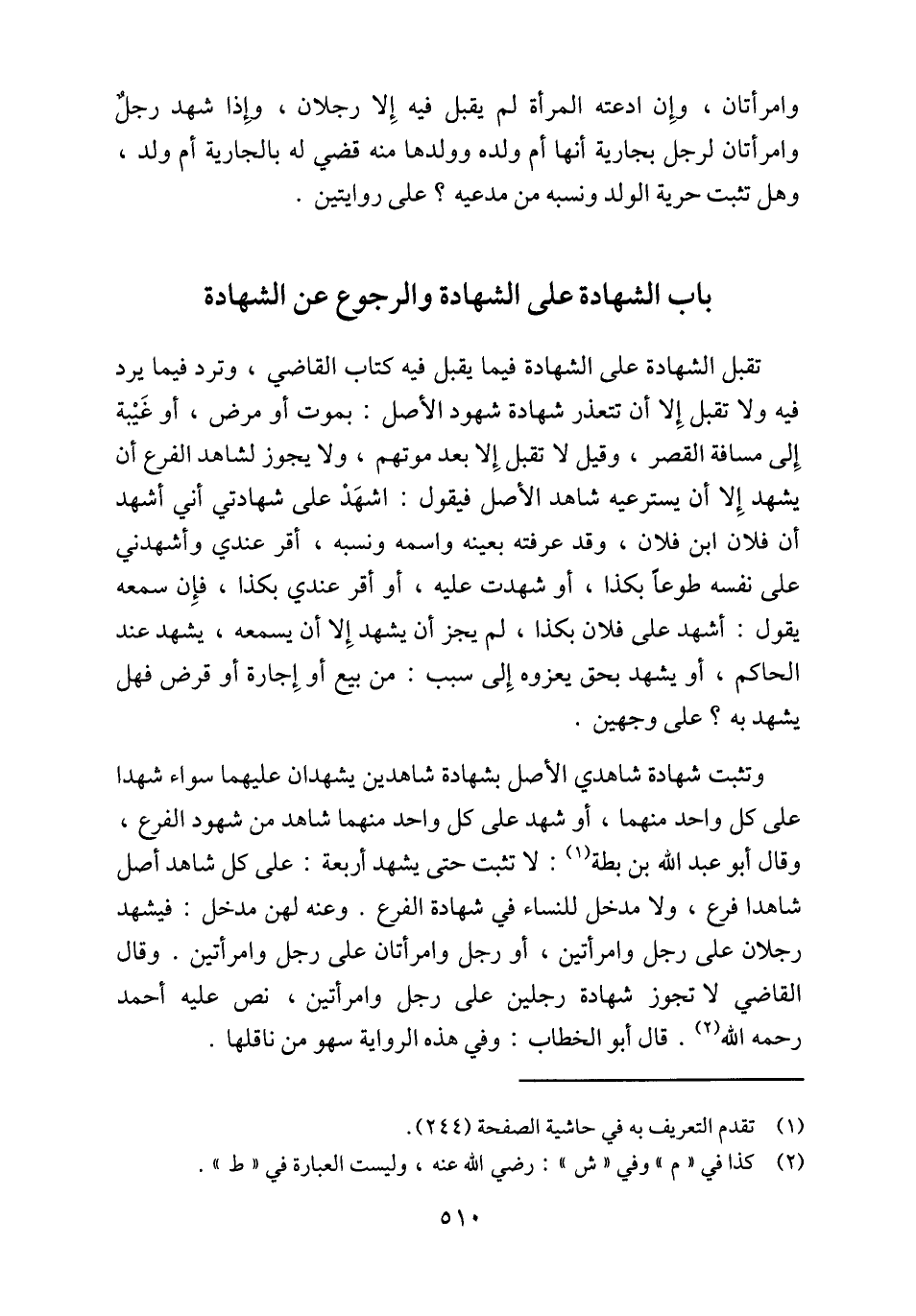 باب الشهادة على الشهادة والرجوع عن الشهادة
