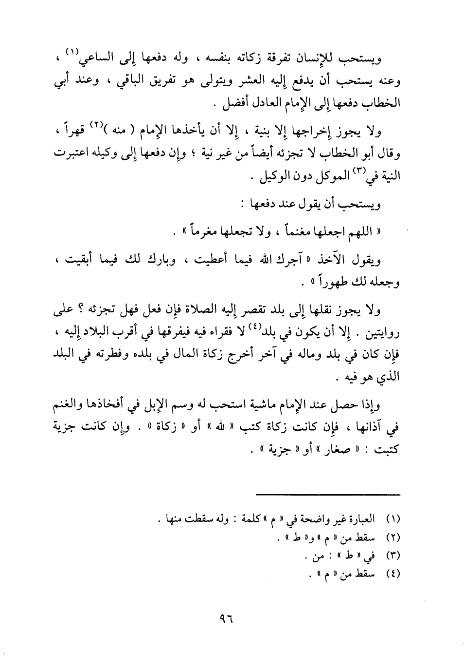 ويستحب للإِنسان تفرقة زكاته بنفسه، وله دفعها إِلى الساعي (¬1)، وعنه يستحب أن يدفع إِليه العشر ويتولى هو تفريق الباقي، وعند أبي الخطاب دفعها إِلى الإِمام العادل أفضل.